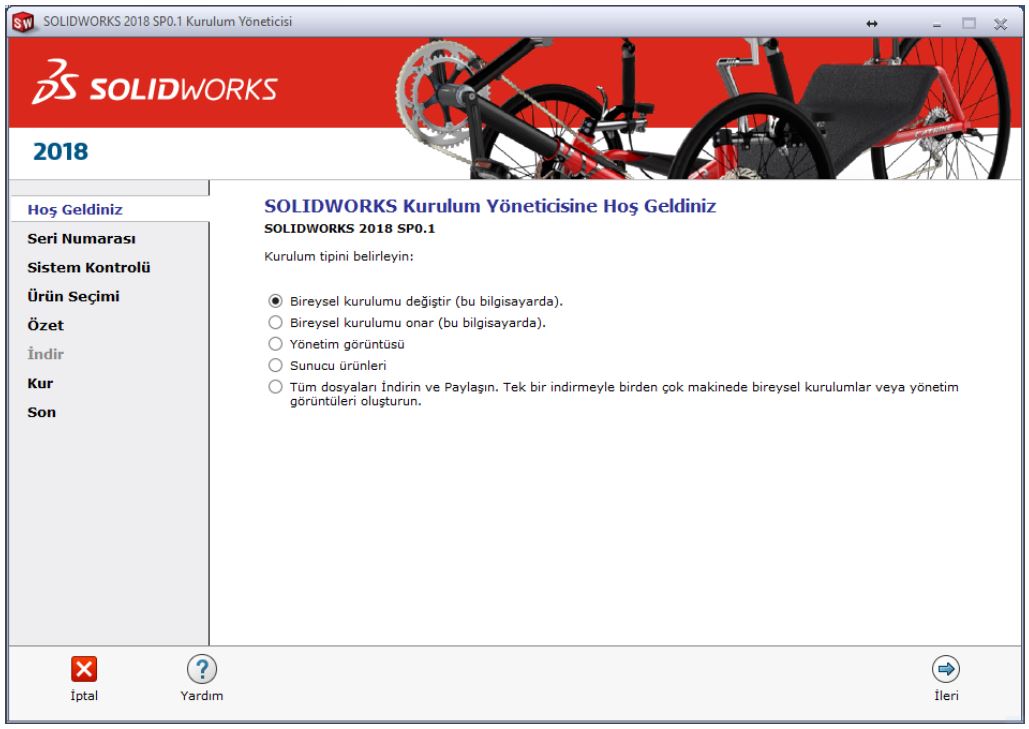 • SOLIDWORKS 2018 kurulum CD‘ sini bilgisayara takınız.